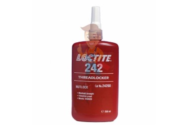 Loctite 242 является однокомпонентным анаэробным резьбовым фиксатором средней прочности, полимеризующимся в условиях отсутствия воздуха в небольших зазорах между металлическими поверхностями.