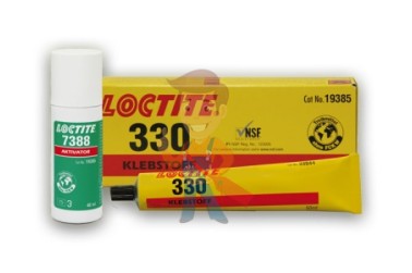 Loctite AA 330/7386 – конструкционный однокомпонентный анаэробный клей высокой вязкости, предназначенный для склеивания разнообразных материалов. Продукт полимеризуется в зазоре между плотно прилегающими поверхностями при помощи активатора Loctite 7387.