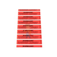Защитная наклейка используется в качестве одноразовой самоклеющейся пломбы, используемой для идентификации незаконного доступа к оборудованию или внутрь помещений. Пломба подходит для опечатывания любых металлических, деревянных, пластиковых или картонных поверхностей. Наклейка изготавливается из полиэстера, специального полиэтилена или акрила, имеет специальный защитный термослой, благодаря чему не теряет своих клейких свойств при температурных колебаниях и высокой влажности. Лицевой размер – 22х66 мм. Может быть нанесена полезная информация и серийный номер.